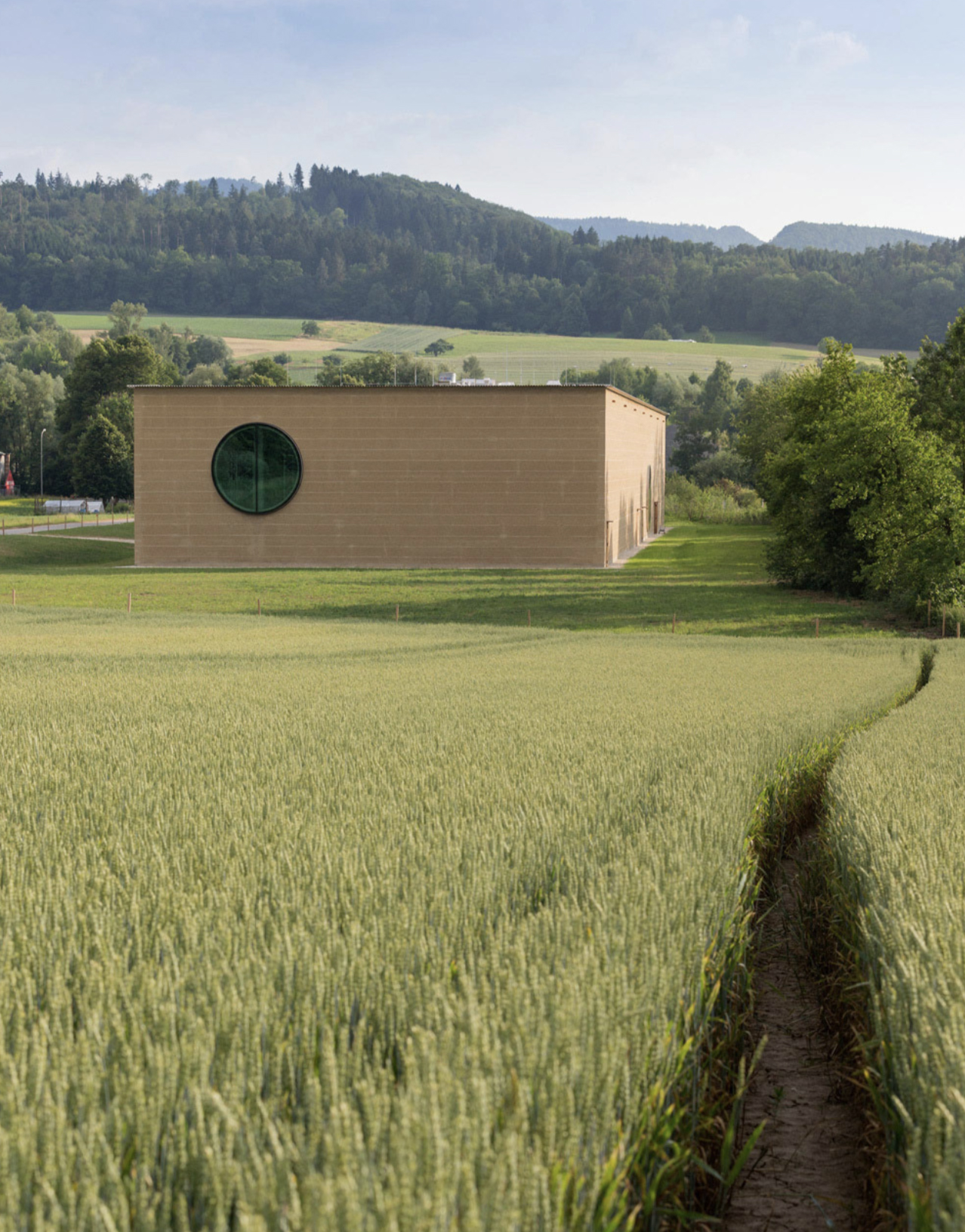 Образ «вырванного куска земли» не давал архитекторам покоя, и вскоре они снова вернулись к этой идее, но уже в ином масштабе. Этим проектом стал Ricola Kräuterzentrum, одно из самых интересных зданий в Швейцарии с точки зрения выбора материала. Центр для высушивания, переработки и хранения лекарственных трав, из которых потом создаются леденцы, расположенный посреди поля неподалеку от Лауфена – относительно новый проект Herzog & de Meuron, он появился четверть века после первого склада Ricola и через 15 лет после Шаулагера, а именно в 2014 году.