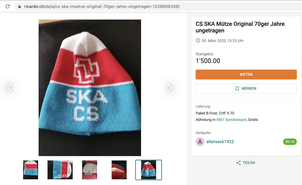 Скриншот объявления о продаже шапки на сайте Ricardo.ch