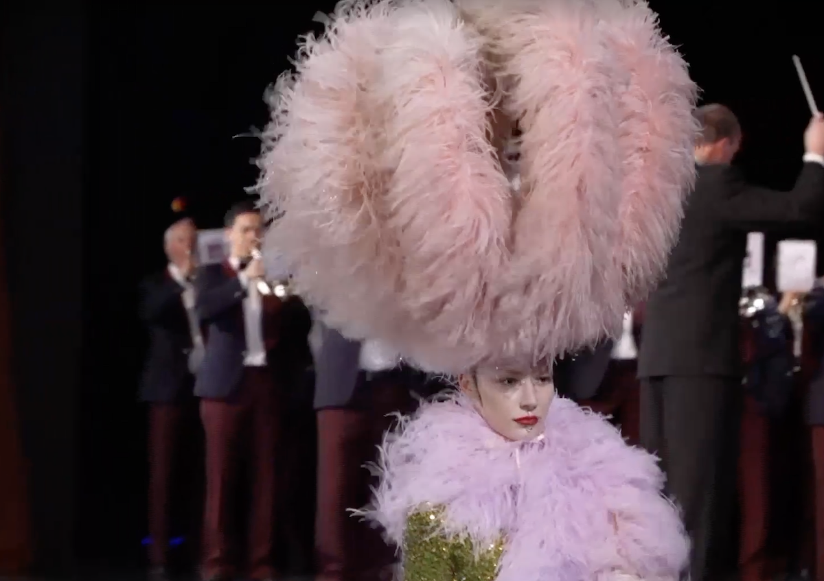 Le styliste suisse Kevin Germanier a surpris les invités de la Fashion Week de Paris avec un défilé de mode accompagné par une fanfare valaisanne.
