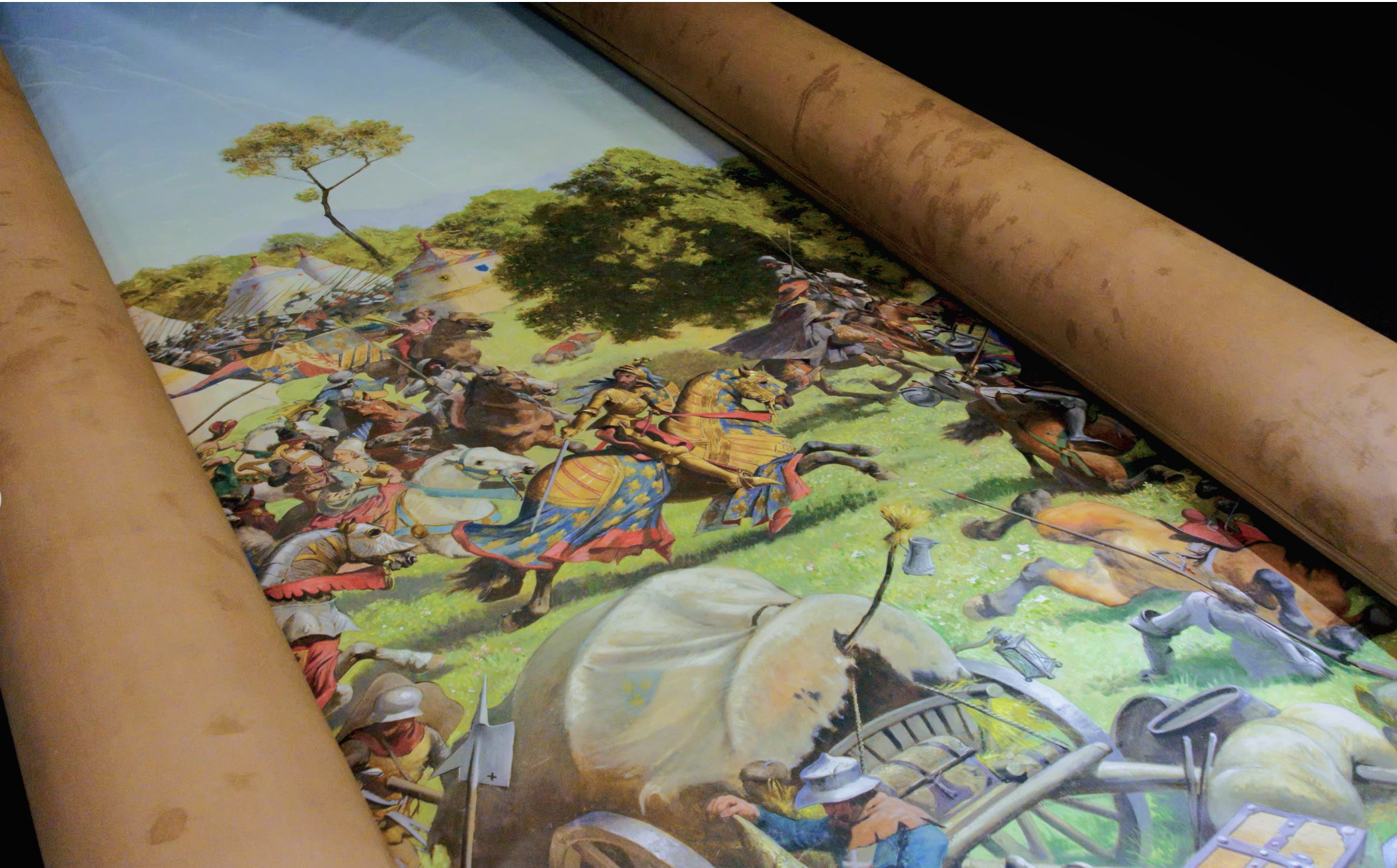 В 1893 году немецкий живописец, педагог, профессор искусств Мюнхенской академии художеств, один из самых известных художников-баталистов Луи (Людвиг) Браун увековечил битву при Муртене, создав монументальное полотно размером 100х10 м, то есть 1000 кв м, известное под названием «Муртенская панорама» - он трудился над ним десять месяцев. (Для сравнения, размер «Бородинской панорамы» в Москве русского художника-баталиста Франца Рубо – 1725 кв.м.) Огромный размер и многочисленные детали картины, пользовавшейся большим успехом на момент ее создания, предполагают то, что сегодня называется иммерсивным опытом. Однако для выставления ее на постоянной основе потребовалось бы построить особое здание в форме ротонды, а Швейцария – не Москва, да и устарела уже такая форма с появлением и развитием кинематографа. С 1924 года полотно в свернутом виде хранится в Муртене и разворачивается лишь в редчайших случаях, так и не будучи прочно установленным. Понятно, что состояние картины постепенно приходило в упадок. И вот по инициативе фонда, созданного в 1996 году, она была, наконец, отреставрирована и представлена на национальной швейцарской выставке Expo.02 в 2002 году, в рамках проекта «Монолит» архитектора Жана Нувеля на Муртенском озере. После выставки полотно снова было свернуто и возвращено в хранилище, однако члены фонда не оставляли надежды найти способ выставить его на постоянной основе. Их мечте суждено сбыться!