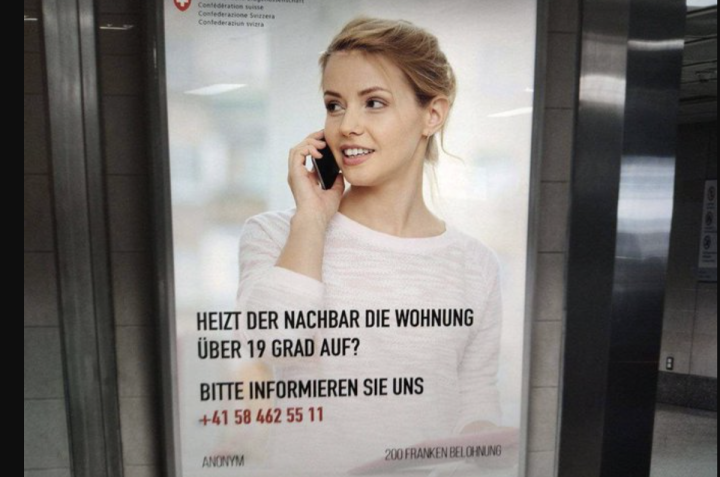 В социальных сетях появился фальшивый плакат, якобы от имени властей призывающий швейцарцев доносить на соседей, которые отапливают квартиру ваше 19 градусов. Кто за этим стоит?